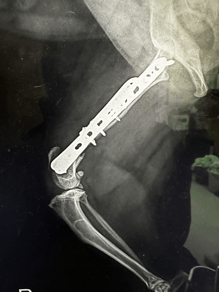 整形外科専門外来でプレート固定術を行ったところ、現在は元気に走り回れるようになりました。